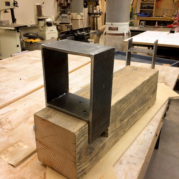 The wood beam was left over from a set of end tables I made for a customer. I was sitting in my very small and cluttered office I staring at it and thought “I should make something with it to get it out of here”. The beam bench idea was born.