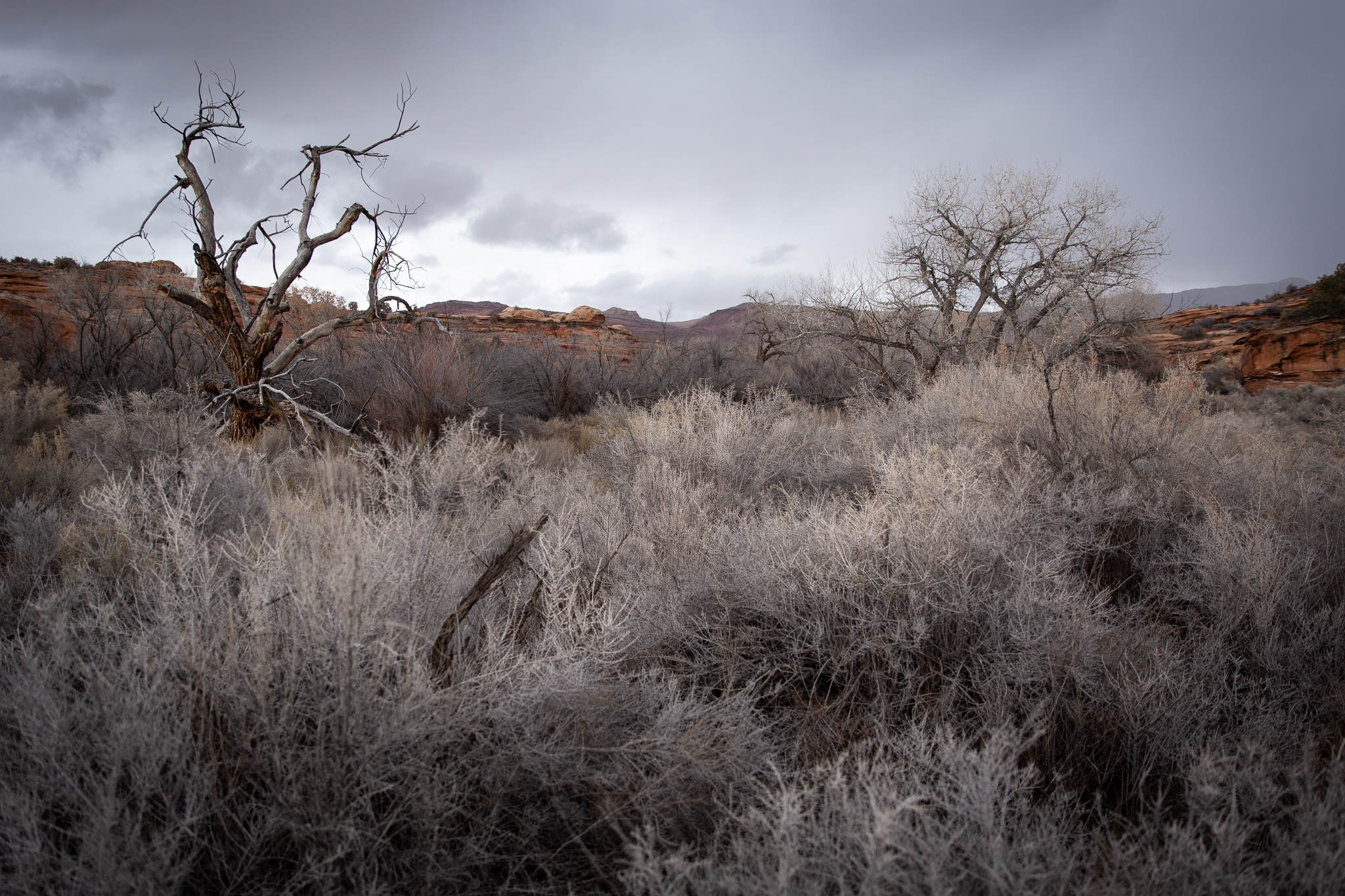 There were severe winter storm warnings out for everywhere from central Utah to south of Flagstaff, but they just skirted by me, and all I saw were a few flakes and some graupel, and the aftermath in the form of cars and trucks in the ditches.